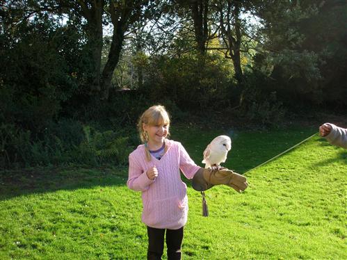Molly at Muncaster Castle with Sparky - their famous "tame" owl who does all the posing for the WOT.